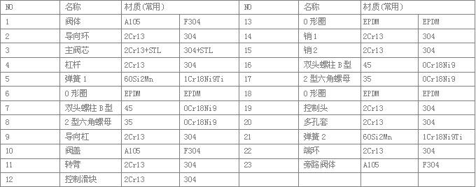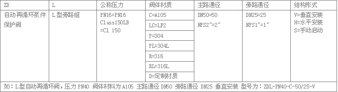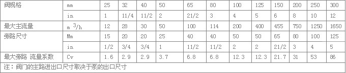 材料的温度范围:型号编制:作用原理:根据感应到的主路流量不同,自动再循环阀的主阀瓣止回锥将自动移动到某一个位置上。同时主阀瓣带动旁路阀杠杆,将主阀瓣动作传递至旁路,通过杠杆控制旁路阀阀瓣的位置,改变旁路的节流面积,从而控制通过旁路的流量。当主阀瓣回至阀座关闭状态时,所有流量通过旁路回流。当主阀瓣上升至顶端位置时,旁路则完全关闭,所有泵的流量流向工艺系统。该阀集四种功能于一体。流量感知:自动再循环阀的主阀瓣能自动感知工艺系统中的主流量,从而根据此流量来确定主阀瓣和旁路阀瓣的位置。再循环控制:自动再循环阀可以将泵正常运行所需要的最小流量通过旁路吸入到存储装置中,调节水泵的H-Q特性,实现再循环。旁路多级减压:旁路控制系统能低噪音小磨损的把回流介质从泵出口的高压减至适宜回流存储装置中的低压止回:自动再循环阀还具有止回阀的作用,防止液体回流到泵体中。标准型旁路带止回功能。其它旁路尺寸可按要求制作;最大的旁路流量取决于最大的Kv值。尺寸选择:零件与尺寸:尺寸与重量: