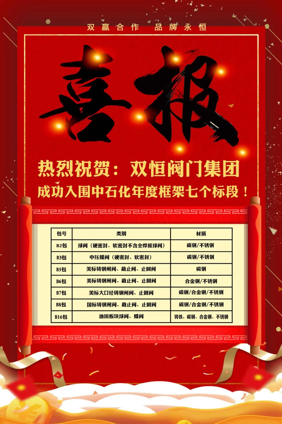 喜报!双恒阀门集团成功入围2021年中石化年度框架七个标段!